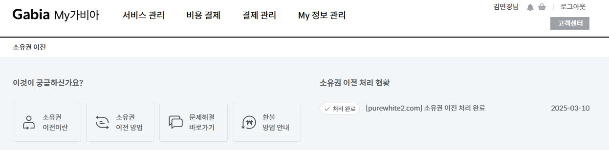 ¶ÇÇÑ °¡ºñ¾Æ ¼ÒÀ¯±Ç ÀÌÀü ½Ã½ºÅÛÀÌ ÀÛ³â 10¿ù ¸»¿¡ °³ÆíµÇ¾î ´õÀÌ»ó µµ¸ÞÀÎ ¼ÒÀ¯±Ç ÀÌÀü ½Ã ¸¸±âÀÏ ¿¬ÀåÀ» Áö¿øÇÏÁö ¾Ê½À´Ï´Ù.¡®¶ó´Â °¡ºñ¾Æ ÃøÀÇ ´äº¯À» ¹Þ¾Æ ¼¹öºñ¸¦ 18±â¿¡ ¸ÕÀú ¼Û±ÝÇÏ¿´½À´Ï´Ù.